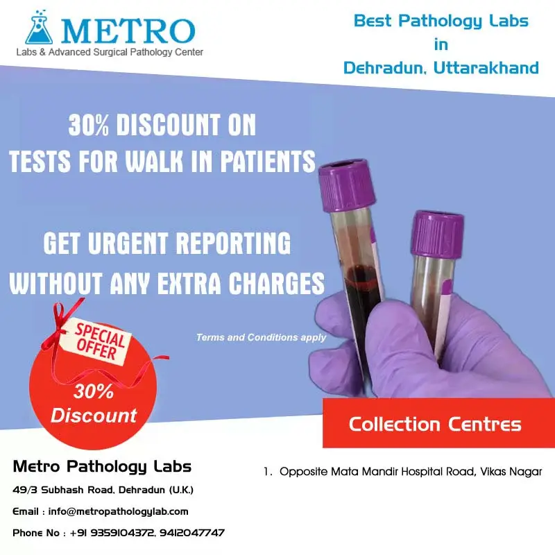 Metro Pathology Labs at Subhash Road is a leading pathology lab in Dehradun, Uttarakhand equipped with the latest technology and high-tech lab testing equipment offering a wide range of diagnostic tests & procedures. Specially trained clinical pathologist provide healthcare services related to pathology lab.